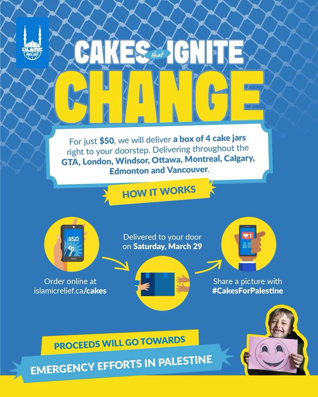 Step 1: Order online at islamicrelief.ca/cakes before March 24th